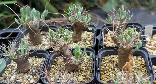 ふくよかな塊根に、丸い葉、妖艶な色の花