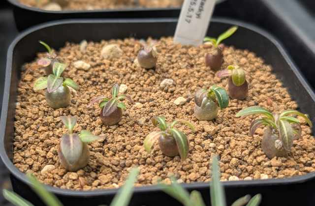 タッキー パキポディウム塊根植物実生 タッキー 2025.5実生 タッキー 2025.05.222025.09.11 pachypodium Tackyi2025.5.17 播種新鮮なので前処理せずに播種 目次 2025.5.17 播種2025.5.282025.6.62025.6.102025.7.82025.7.182025.8.72025.9.11 2025.5.17 播種 播種から5日後。新鮮ってサイコー♪ 2025.5.28 子葉が3枚の苗がチラホラ。これは??? 2025.6.6 2025.6.10 2025.7.8 2025.7.18 2025.8.7 2025.9.11