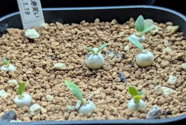 恵比寿笑い パキポディウム塊根植物実生 恵比寿笑い 2025.1.19 実生 恵比寿笑い 2025.06.062025.10.03 Pachypodium brevicaule和名 恵比寿笑い 2025.5.22 2025.10.2